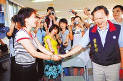 國民黨花蓮縣長黨內初選民調結果揭曉,前花蓮縣農發處長杜麗華勝出,杜麗華與葉金川兩人展現風度,握手互相祝福。(來源:臺灣《中國時報》)