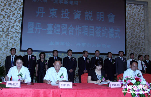 第八屆“遼寧臺灣周”期間,丹東市舉行投資環(huán)境說明會暨丹臺經(jīng)貿(mào)合作項(xiàng)目簽約儀式,現(xiàn)場簽訂18個(gè)投資合作協(xié)議。(中國臺灣網(wǎng) 鐘寶華 攝)