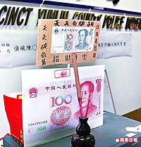 中國臺灣網(wǎng)9月2日消息 一群原從事特種行業(yè)的臺灣年輕男女,因景氣欠佳,酒店生意不好,集體轉(zhuǎn)行從事詐騙業(yè),專門騙大陸民眾,日前詐騙一名精明的臺商遭識破,臺商打反詐騙電話報警。臺灣警方昨攻堅時發(fā)現(xiàn)嫌犯竟將人民幣影印放大,上香膜拜,就連電腦屏幕桌面也是人民幣圖像,不禁笑罵:“真是想錢想瘋了!”