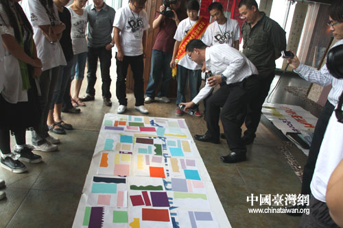 簡仁吉進(jìn)行噴膠示范 (中國臺灣網(wǎng) 徐維彬 攝)