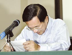 針對扁家巨額匯往海外,陳水扁曾在辦公室舉行記者會,向臺灣民眾道歉。(臺灣《中國時報》資料照片)