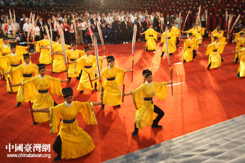 9月27日上午,2009年第二屆兩岸師生聯合祭孔大典在臺灣新竹縣立體育館舉行,圖為祭孔大典現場。(中國臺灣網 李杰 攝)