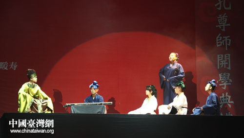 兩岸學生共演《論語》短劇,題為《學做人、學做事、學擔當天下》的古今師生對話。(中國臺灣網 李杰 攝)
