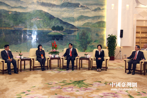11月3日上午,中共中央政治局常委、全國政協主席賈慶林在北京人民大會堂會見出席“2009海峽兩岸工會論壇”的侯彩鳳等部分臺灣代表。 (中國臺灣網 田云鵬 攝)