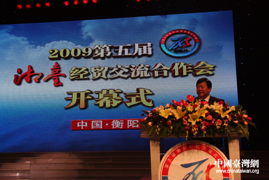 中國臺灣網11月6日衡陽消息 由國務院臺灣事務辦公室和湖南省人民政府共同主辦的第五屆“湘臺經貿交流合作會”今6日在湖南省衡陽市開幕。海峽兩岸關系協會會長陳云林、臺灣親民黨主席宋楚瑜、湖南省省長周強、國臺辦副主任孫亞夫出席并一起啟動開幕式按鈕。