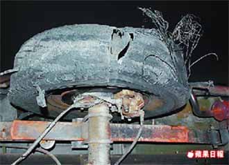 爆胎的左后輪 來(lái)源:臺(tái)灣《蘋(píng)果日?qǐng)?bào)》