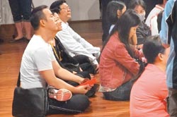 法會結(jié)束前,曹宇文拿隨喜紅包與璩美鳳給年輕的法師,她神情興奮,不斷露出天真甜美的招牌笑容,還抓著法師聊了約五分鐘,法師見排隊人多,要她稍晚再聊。