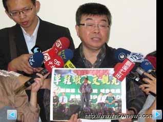 國民黨“立委”邱毅11日出示民進黨人士與遭指為“黑道”的更生人江欽良的合照,其中包含民進黨“立委”蔡煌瑯。 來源:臺灣“今日新聞網”