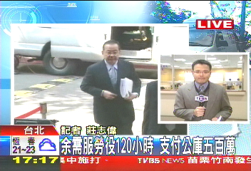 法官在今天做出宣判,余政憲判處2年有期徒刑,緩刑5年,剝奪政治權利4年,法官并要求余政憲在緩刑期間,需要服120小時的義務勞務,并向公庫繳納500萬元(新臺幣,下同)。
