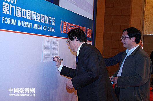 網絡媒體代表共同簽署《建設安全互聯網宣言》。(中國臺灣網 鐘寶華 攝)