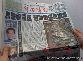 《自由時(shí)報(bào)》刊登馬英九車隊(duì)行駛高速公路的合成照片。來源:臺(tái)灣“今日新聞網(wǎng)”