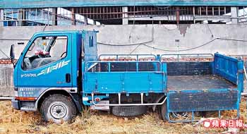 偷豬車(chē)動(dòng)彈不得,竊賊將車(chē)斗柵欄放下棄車(chē)逃離。 來(lái)源:臺(tái)灣《蘋(píng)果日?qǐng)?bào)》