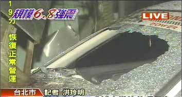 臺北有三起水塔掉落消息,其中五分埔的一處民宅,6樓水塔在地震當時水塔掉落,壓垮了停在下方的白色轎車,當時車主剛好停好車,受到很大的驚嚇。