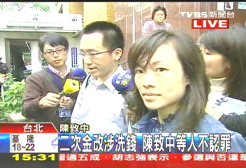 臺(tái)北地方法院首度審理二次金改弊案,陳致中、陳幸妤及黃睿靚都不認(rèn)罪。(圖片來(lái)源:臺(tái)灣TVBS電視臺(tái))