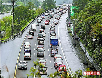 臺灣高速公路昨涌現出游和提前北返車潮。來源:臺灣《蘋果日報》