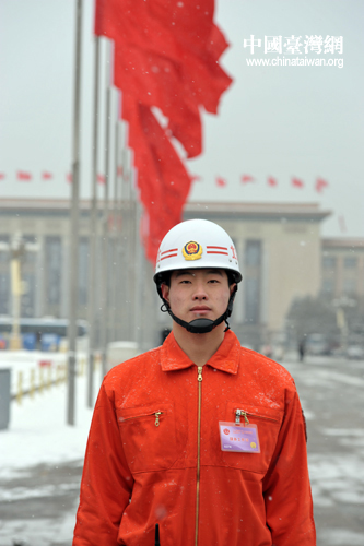 雪中也有我消防官兵的身影。 (中國臺灣網發 肖春陽、劉洋攝)