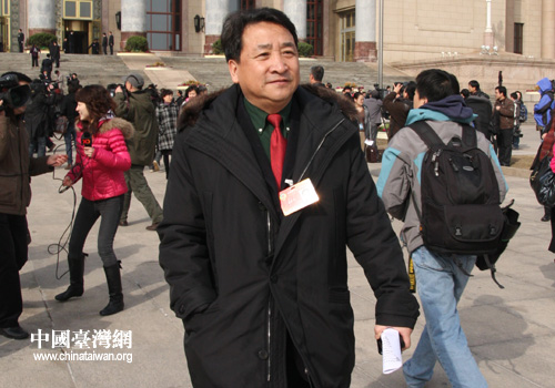 13日上午,全國政協十一屆三次會議勝利閉幕。這是著名相聲演員姜昆。(中國臺灣網 高斯斯 攝)
