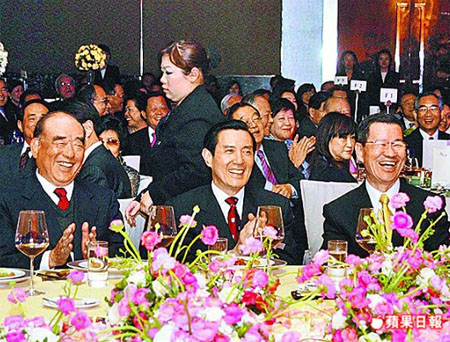 連家喜宴,馬英九(中)跟臺當局高官、國民黨大老都出席。 來源:臺灣《蘋果日報》