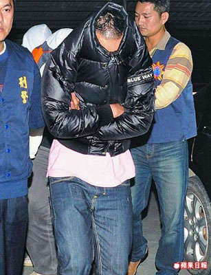 臺警方昨晚帶回涉嫌砍死人的嫌犯、臺軍現(xiàn)役軍人劉原汶(中)等5嫌犯漏夜偵訊。 來源:臺灣《蘋果日報》