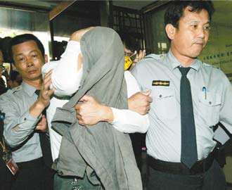 臺灣陳姓計算機工程師(中)在網絡發文,號召撲殺馬英九在美的女兒,被捕后由臺警方移送臺北檢方偵辦。 來源:臺灣《聯合報》
