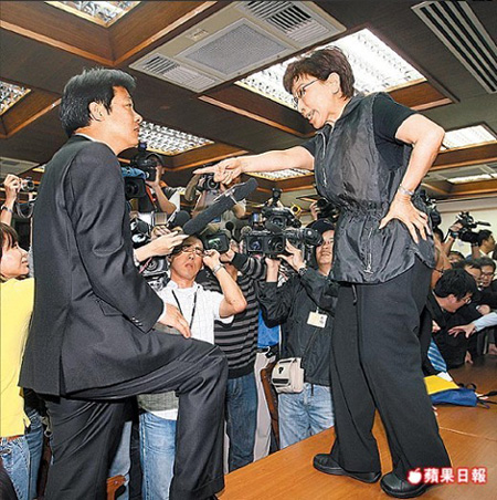 國民黨籍民意代表洪秀柱(右)與民進(jìn)黨籍民代賴清德(左)互嗆。