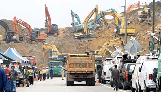 昨天是臺(tái)灣三號(hào)高速公路基隆七堵段山體滑坡后的第一個(gè)上班日,救災(zāi)單位在現(xiàn)場(chǎng)加派機(jī)具進(jìn)場(chǎng),全力開挖,山頭上滿是挖土機(jī),全力尋找任何可能的生機(jī)。