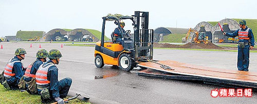 臺(tái)軍演練飛機(jī)跑道被毀時(shí),以鋪設(shè)玻璃纖維板來(lái)?yè)尵取?lái)源:臺(tái)灣《蘋(píng)果日?qǐng)?bào)》