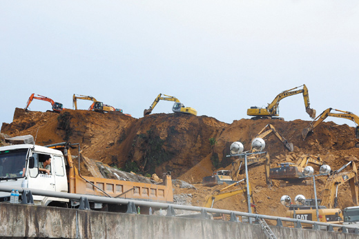 4月26日上午動員50多輛挖土機開挖搶救。圖片來源:臺灣《聯合晚報》