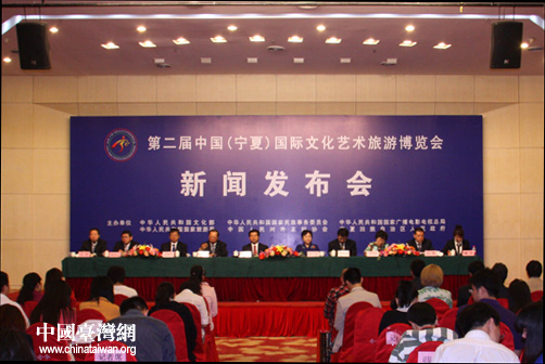 第二屆中國寧夏國際文化藝術(shù)旅游博覽會(huì)新聞發(fā)布會(huì)現(xiàn)場。(中國臺(tái)灣網(wǎng) 董潔 攝)
