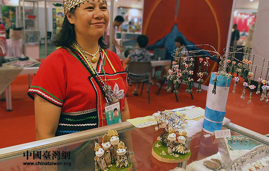 圖為第三屆海峽兩岸文博會臺灣文創(chuàng)展區(qū)內,臺灣少數(shù)民族手工藝者在展示作品。(中國臺灣網(wǎng) 張弛 攝)