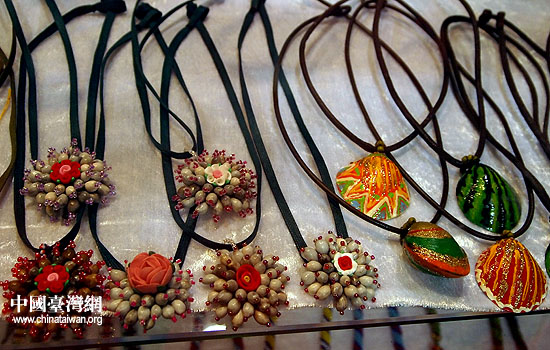 圖為第三屆海峽兩岸文博會臺灣文創(chuàng)展區(qū)展出的,用植物種子制作成的臺灣少數(shù)民族手工藝品。(中國臺灣網(wǎng) 張弛 攝)