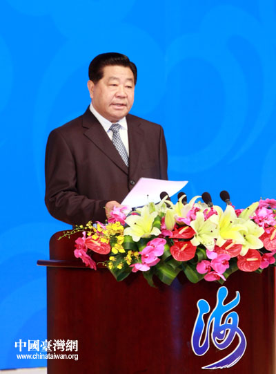 6月20日上午9時,第二屆海峽論壇大會在廈門海峽會議中心海峽廳舉行,圖為中共中央政治局常委、全國政協主席賈慶林致詞。(中國臺灣網 鐘寶華 攝)