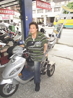 肢障的馬老板為了抵抗被砍,拿起助行器抵擋,并騎著殘障機車追歹徒。圖片來源:臺灣《聯合報》