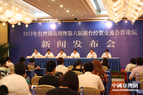 7月16日下午,湖南省政府舉行新聞發(fā)布會,湖南省副省長陳肇雄在會上發(fā)布消息表示,“2010年臺灣湖南周”暨第六屆湘臺經(jīng)貿(mào)交流合作論壇將于8月2日至9日在臺灣舉行,湖南省委副書記梅克保將率領(lǐng)約300人的代表團(tuán)赴臺進(jìn)行交流活動。(中國臺灣網(wǎng) 楊麗 攝)