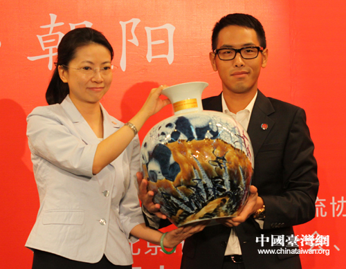 兩岸青年代表互贈(zèng)紀(jì)念品 (中國(guó)臺(tái)灣網(wǎng) 孫金誠(chéng) 攝)