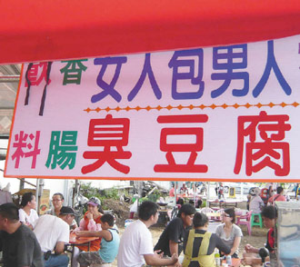 “女人包男人”的攤位招牌,吸引顧客上門。圖片來源:臺灣《聯合報》