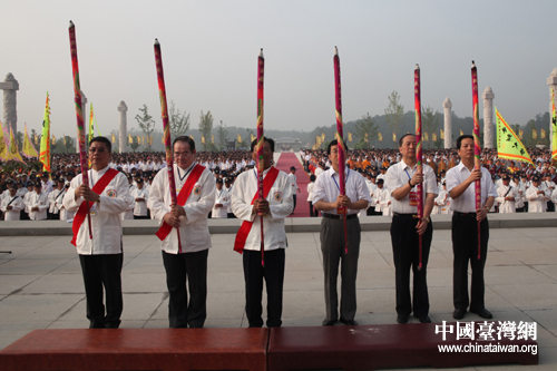 兩岸主祭人國臺辦交流局局長李維一、臺灣“中華神農大帝協進會”理事長陳福財等共敬高香(中國臺灣網 趙輝 攝)