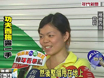 中國臺灣網8月18日消息 綜合臺灣媒體報道,身高不到1米60的檳榔西施王莉莉,前段時間在臺北縣檳榔店中上班時,碰到比她高一個頭、身高170厘米的男子王德裕來搶錢。王莉莉毫不畏懼,竟然一把抓住王德裕左拋右甩,還甩巴掌痛毆,王德裕被打了整整16分鐘。警方獲報到場,還看到王德裕呆立現場,似乎受到驚嚇。
