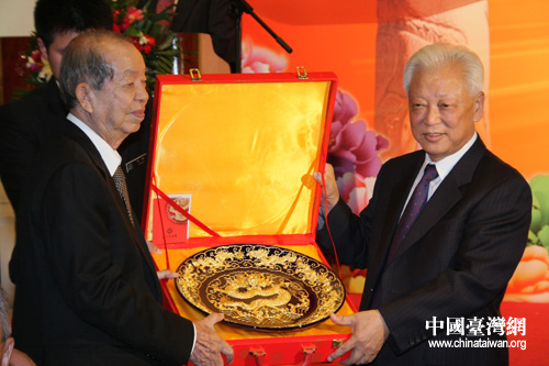 許文龍代表奇美集團向民革中央贈送紀念品(中國臺灣網 孫金誠 攝)