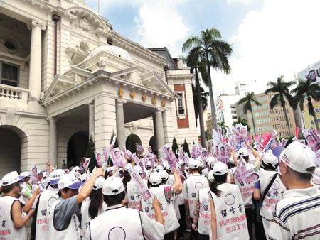 臺(tái)中市府廣場(chǎng)涌入?yún)⑦x人大批支持者,形成旗海飄揚(yáng)的熱鬧場(chǎng)面。來(lái)源:臺(tái)灣《中國(guó)時(shí)報(bào)》