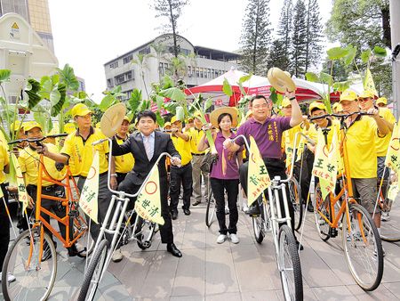臺(tái)中市議員參選人以高頸自行車隊(duì)造勢(shì)。來(lái)源:臺(tái)灣《中國(guó)時(shí)報(bào)》