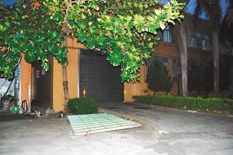 綠色鐵門被撞破倒在地上。(圖片來源:臺灣《聯(lián)合報》)