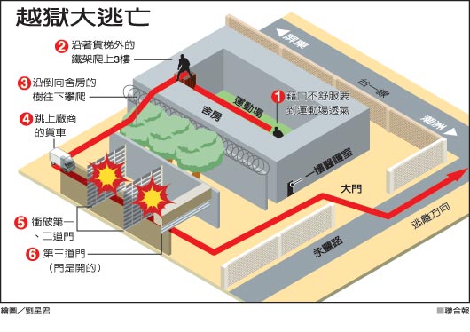 通緝犯越獄示意圖。(圖片來源:臺灣《聯(lián)合報》)