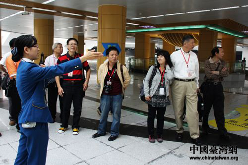 臺灣記者體驗新建成的成都地鐵1號線。(中國臺灣網 馬迪 攝)
