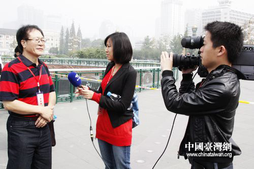 臺灣記者接受四川媒體采訪。(中國臺灣網 馬迪 攝)