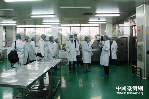 兩岸記者參觀臺資企業元祖食品生產區。(中國臺灣網 馬迪 攝)