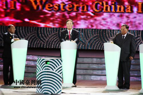 中國臺灣網10月22日成都消息 第十一屆中國西部博覽會(以下簡稱“西博會”)開幕式今日上午9時在四川省成都市錦江大禮堂隆重舉行。中共中央政治局委員、國務院副總理王岐山,全國人大常委會副委員長陳昌智,全國政協副主席白立忱出席開幕式。