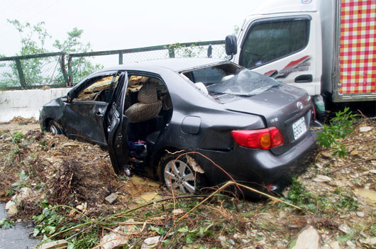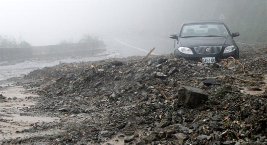臺風(fēng)“鲇魚”所帶來的強風(fēng)豪雨致蘇花公路嚴(yán)重塌方,不少車輛遭崩落的土石砸毀 圖片來源:臺灣《聯(lián)合報》