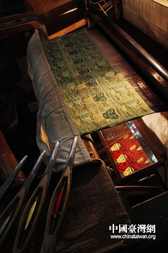 蜀錦織工工作位。錦下方的鏡子可以反映出正面圖案。(中國(guó)臺(tái)灣網(wǎng) 馬迪 攝)
