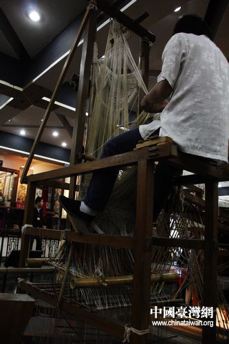 拽花工提起下方的絲線,每次選取不同的絲線將決定蜀錦的圖案。(中國(guó)臺(tái)灣網(wǎng) 馬迪 攝)